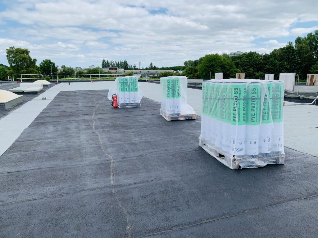 ca. 750 m² Oberlage der Dachabdichtung im Lagenversatz einbauen (Sanierungslage)